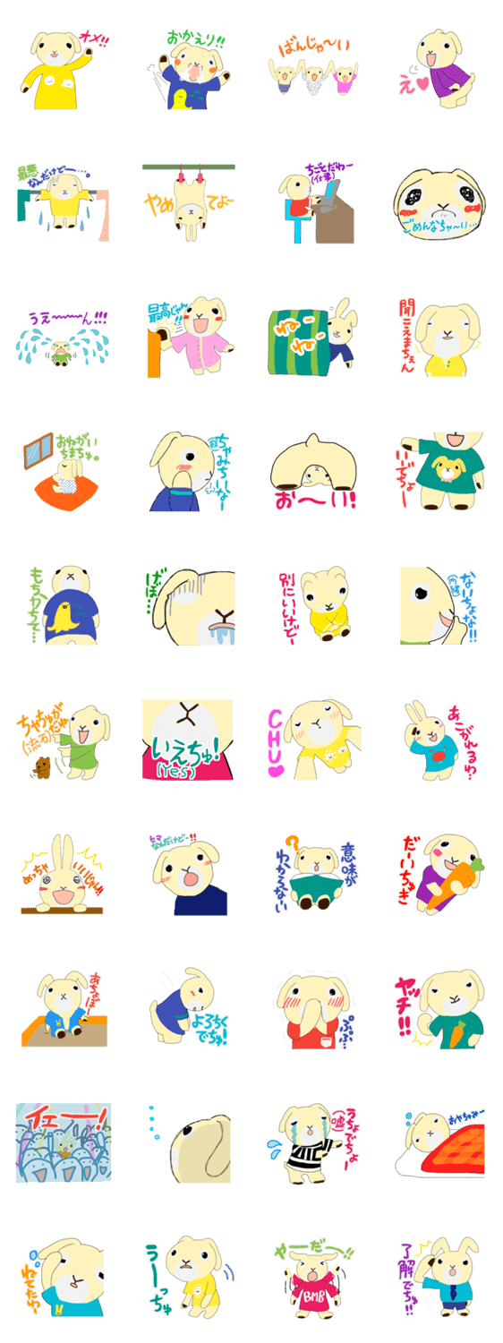 スタンプ説明 赤ちゃん言葉の耳垂れうさぎ、ばんばちゃんです。