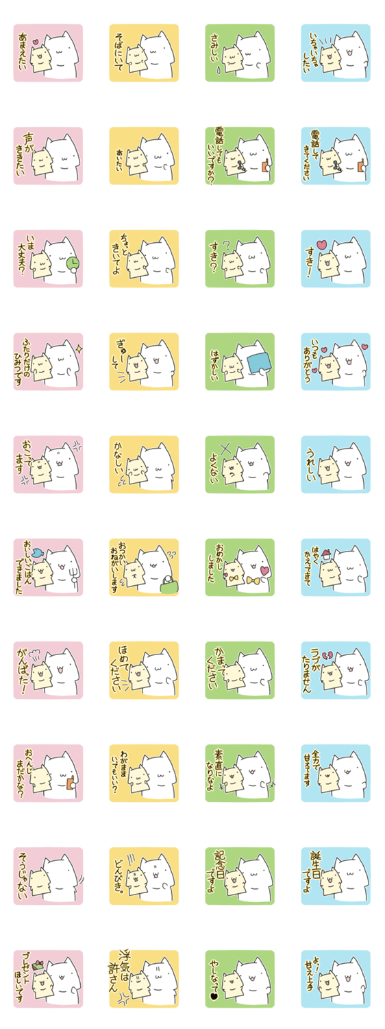 素直になれないあなたのかわりに、小さな猫が腹話術で甘えるラブラブなスタンプ。56stationスタンプ第12弾。