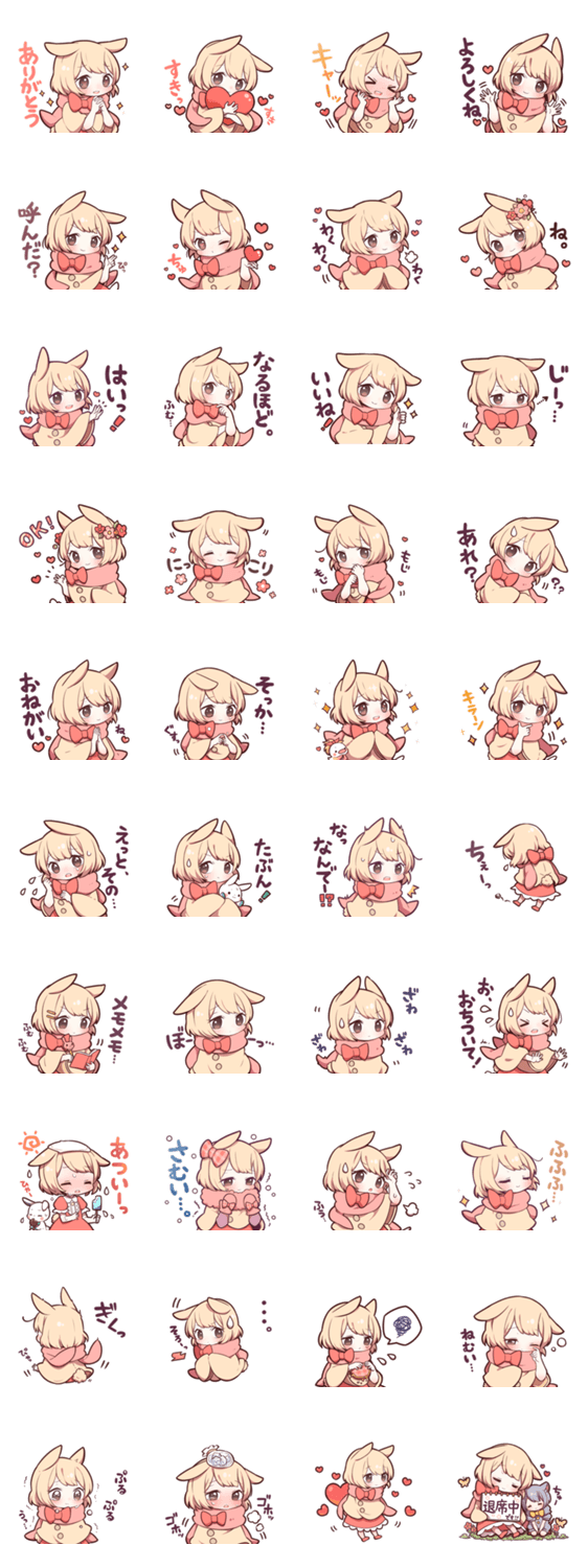 うさぎの女の子のスタンプ第三弾です。日常会話で使える挨拶やリアクションが沢山はいっています。