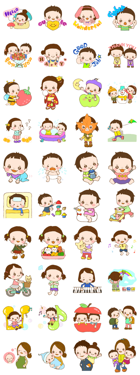 おしゃべりでおてんばな姉と、無口でマイペースな弟。ぱっつん前髪がチャームポイントの仲良し兄弟スタンプです。