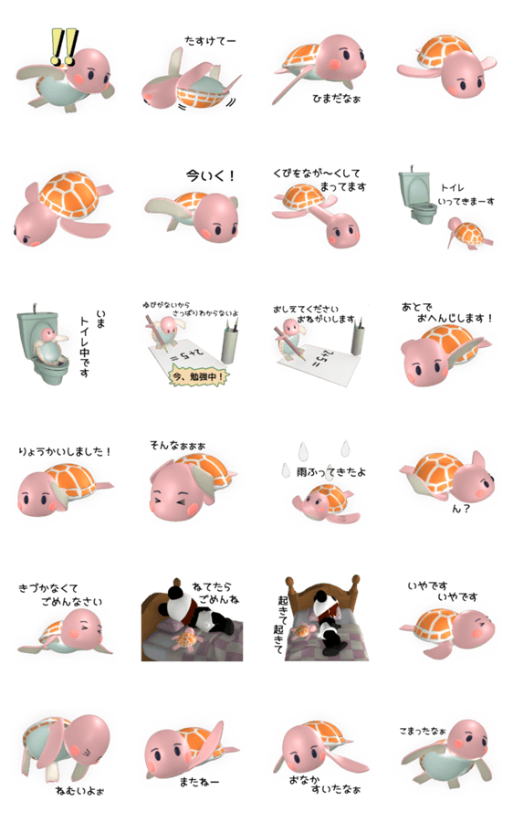 | スタンプ説明 | 赤ちゃん海亀の可愛さは他の追随を許さない・・とまでは言わないが、そのかわいさに私が悶え苦しんでしまったので、気づいたら海ガメのスタンプを作っていました。 |