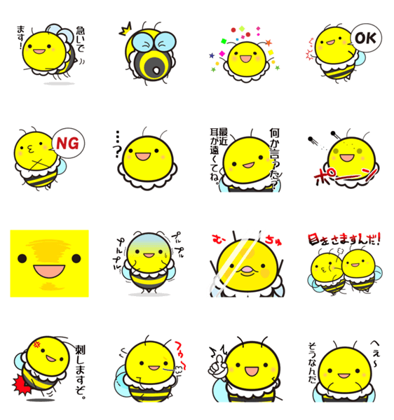 オリジナルキャラクターとして作成している「ハチサン」のラインスタンプです。ちょっとイラっとする可愛らしさを目指して作った16個セット。