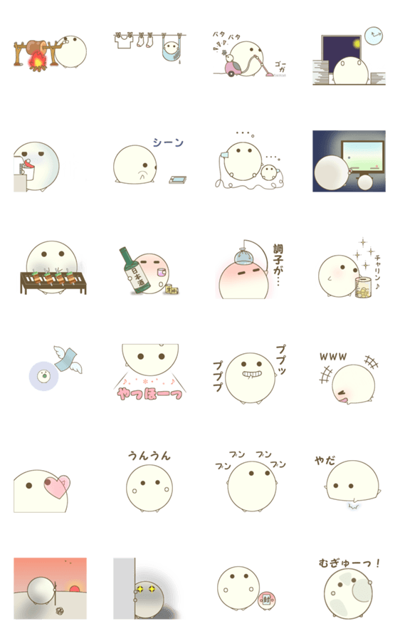 | スタンプ説明 | ふんわりしたキャラクターのスタンプです。今回は感情と生活感を取り入れたスタンプを作りました。キャラクターの動きを楽しんで下さいね。 |