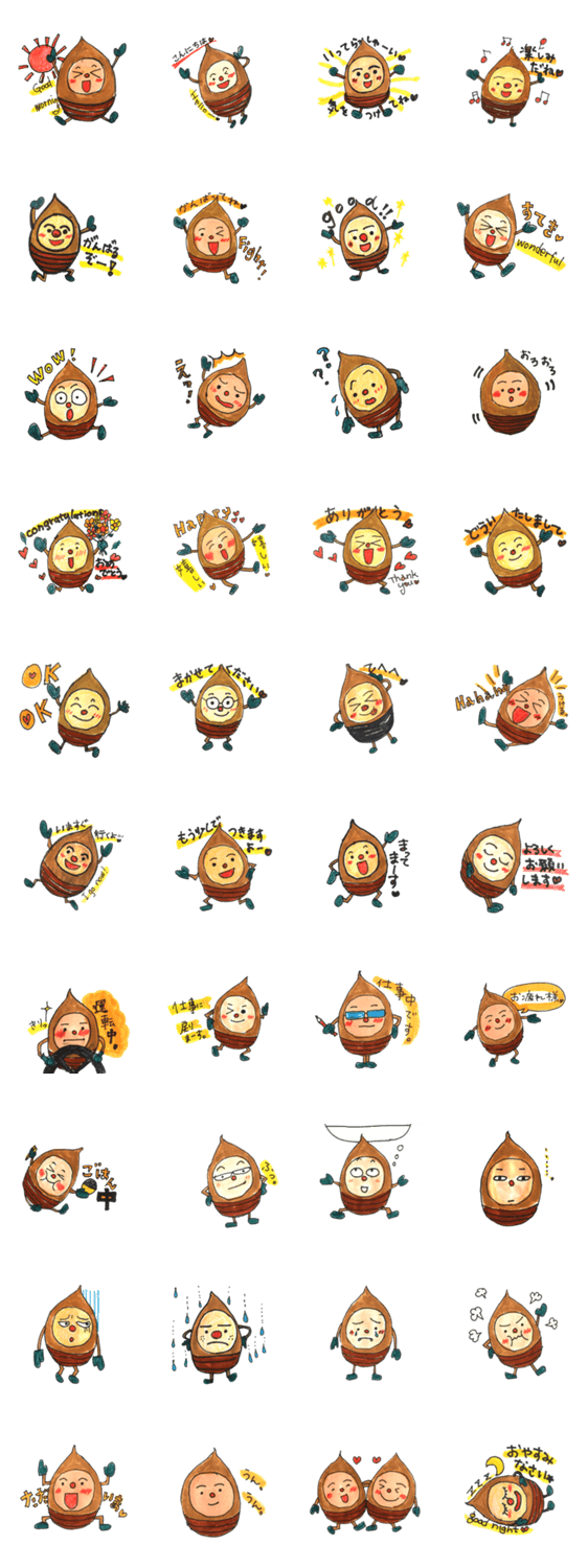 かわいいどんぐりころころんの日常です。 生活の中のいろんな場面で使えるスタンプです。