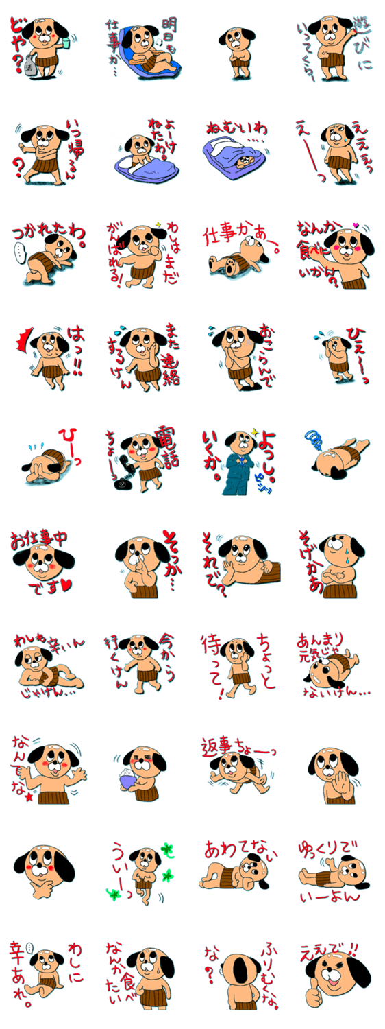 オヤジな犬のあるある日常風景スタンプ。君のお父さんにも共通する姿に笑いを誘う。世界中のお父さん応援します。