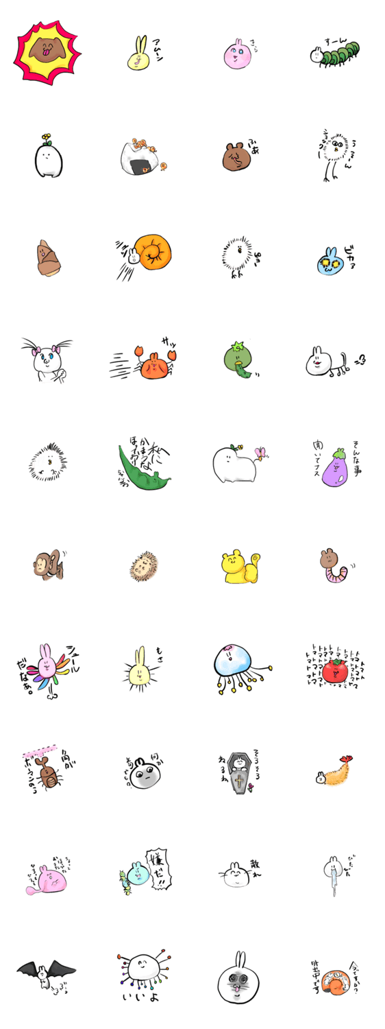 スタンプ説明 いきものたちのシュールなスタンプです。