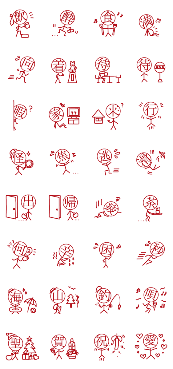 今の気持ちや行動を漢字一文字で簡単に伝えてくれる、棒人間のひともじさん。