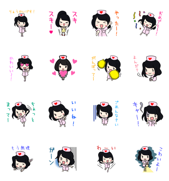 ナース。女性看護師。かわいい看護師が癒してくれます。日常会話で使えますよ。ナースのなっちゃん。
