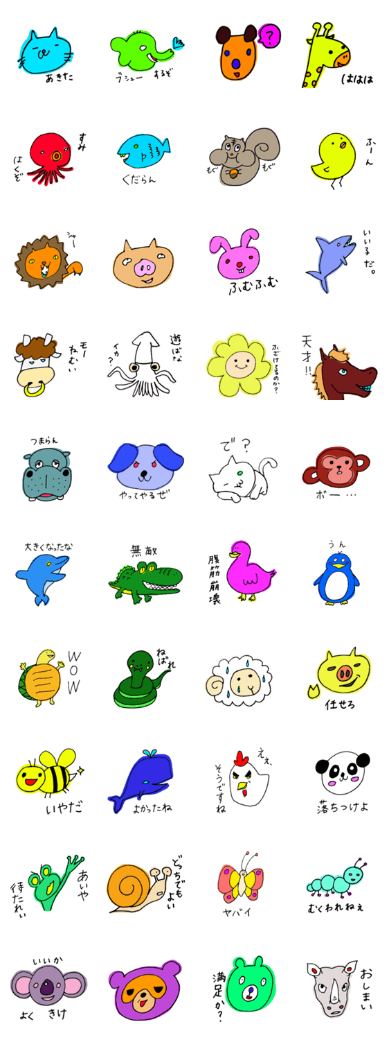 やさぐれている野生動物たちです。 シンプルに、ビビットに、カラフルに、分かりやすく作りました。 かわいいと感じる方も、かっこいいと思う人も、ぜひどうぞ。