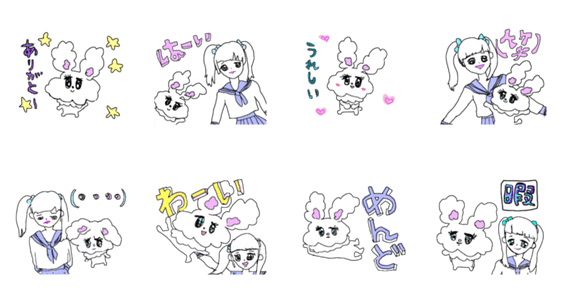 ゆめかわいい女子高生と兎が可愛くメッセージを届けてくれます。よく使う厳選した言葉が8個だけなので選びやすくて送りやすいです♪