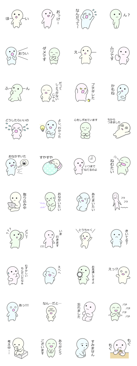 ぷよぷよしたまるい生き物「ぷよまる」のスタンプです。日常会話で何気なく使えるスタンプが揃ってます。