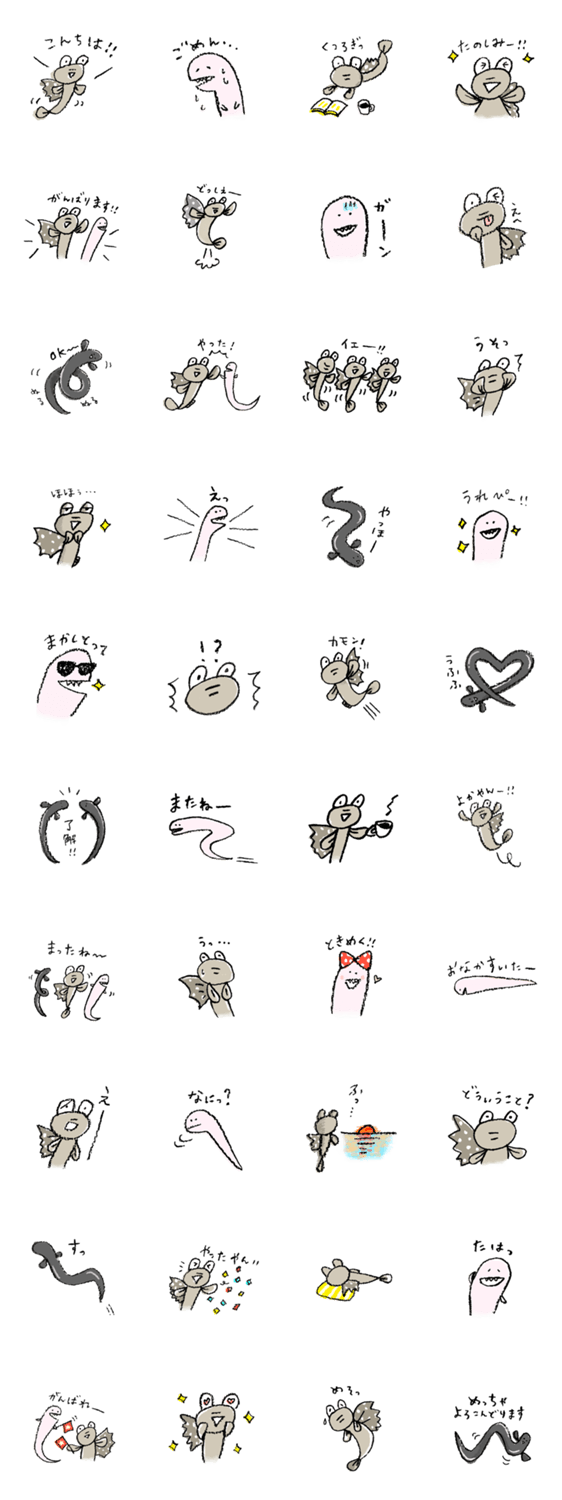 気ままに暮らす、有明海のアイドルむつごろうと、友達のわらすぼとうなぎのスタンプ。筑後や佐賀地方の方ゆるっと使ってください。