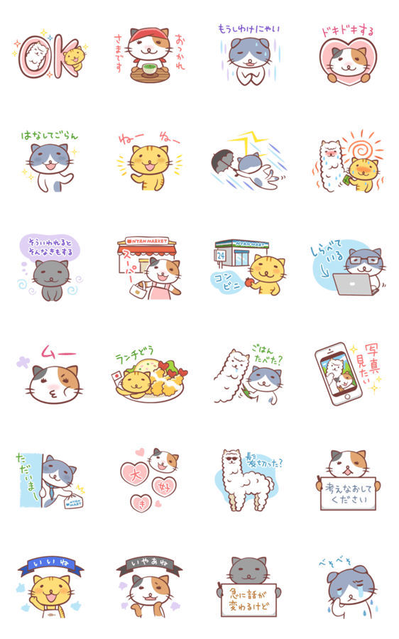 | スタンプ説明 | 大好評ネコとアルパカシリーズ第二弾!第一弾で足りなかったスタンプをみんなのリクエストでプラス。かわいいネコとアルパカがもっと使いやすく、使ってみたくなりました! |