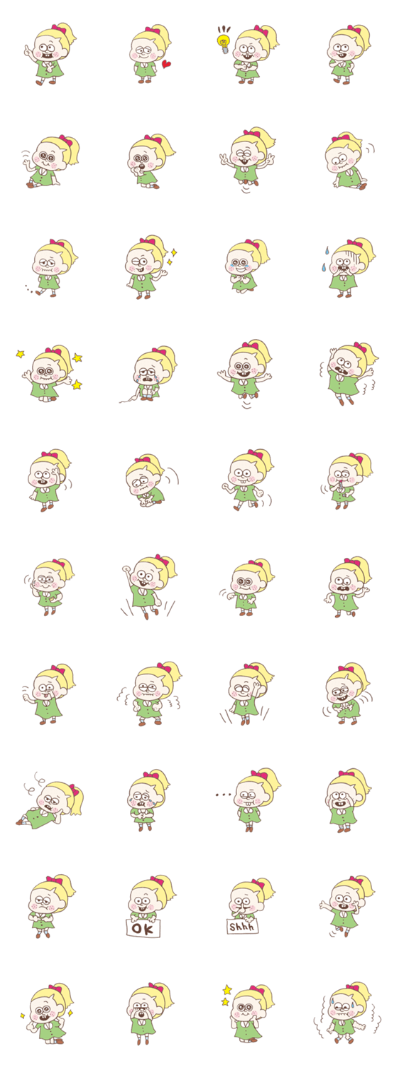 | スタンプ説明 | そばかすがチャームポイント、ポニーテールのカートゥーンガール。ゆるくてシュールで可愛い女の子。文字なしシンプル仕様パート2。 |