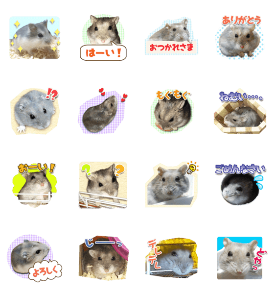 我が家のアイドル、ジャンガリアンハムスターの「ハム太」の写真をスタンプにしてみました。
