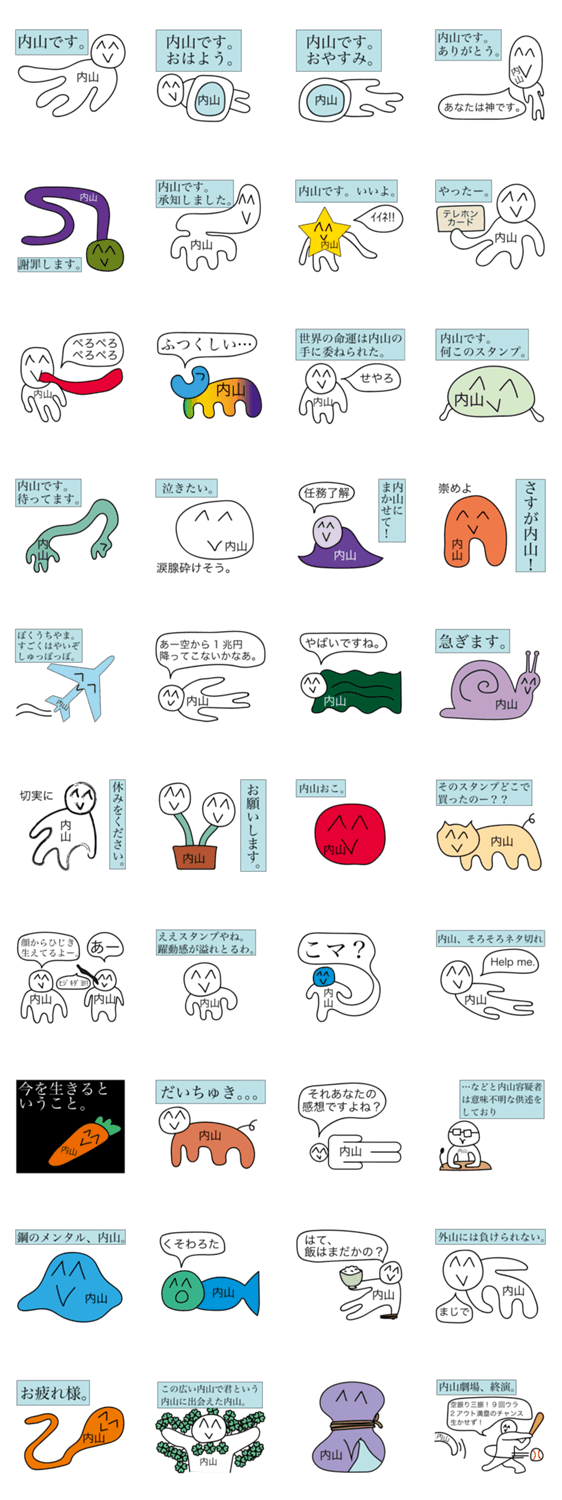 前衛的な内山のスタンプです。うふふ。全国の内山さん、誠に申し訳ございません。