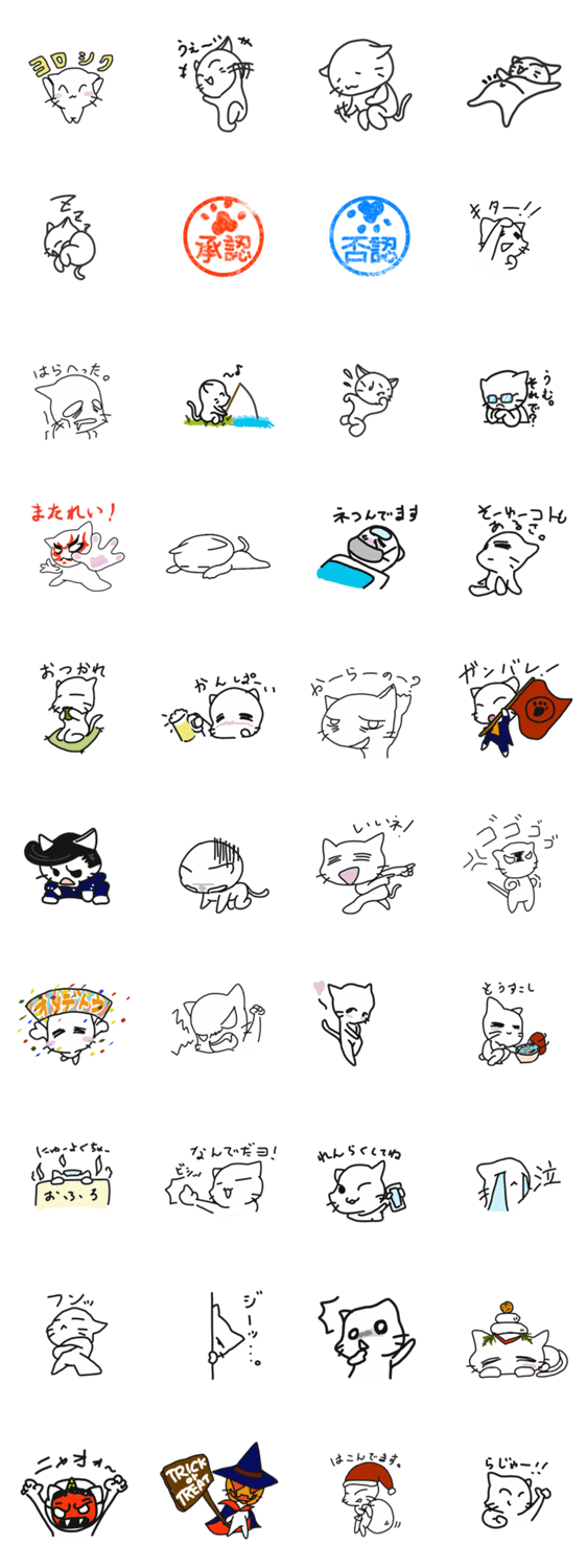 しろねこのスタンプ。様々な表情であなたの気持ちを表現します。