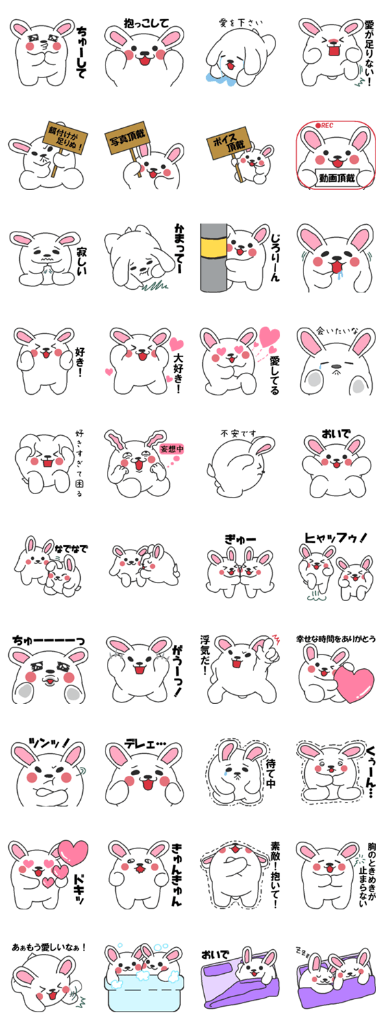 毎日気軽にぺたっと使えるスタンプ。カップル・家族・友達に使えます。ラブラブイチャイチャできます。十二支の兎(ウサギ)がとても可愛くコミュニケーションに最適です。