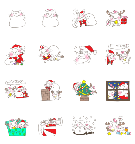 ふたごのにゃんこ(おまんじゅうとおはぎ)のスタンプ季節限定! クリスマスバージョン
