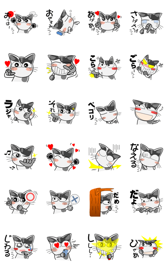 白ネコのあいうえお・・・ってるスタンプ