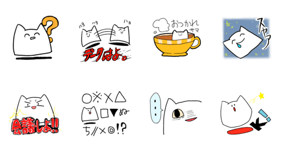 白ネコのあいうえお・・・ってるスタンプ