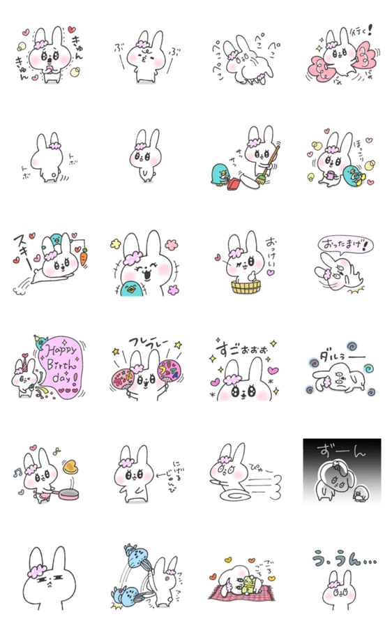 女子なうさぎのスタンプ第5弾です。家族、友達、恋人との会話に使ってください。
