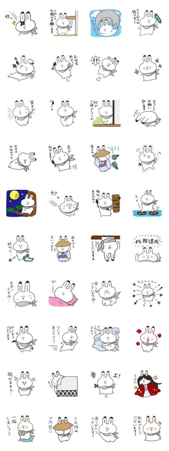 忍者として頑張ったり頑張らなかったりするうさぎのスタンプです。