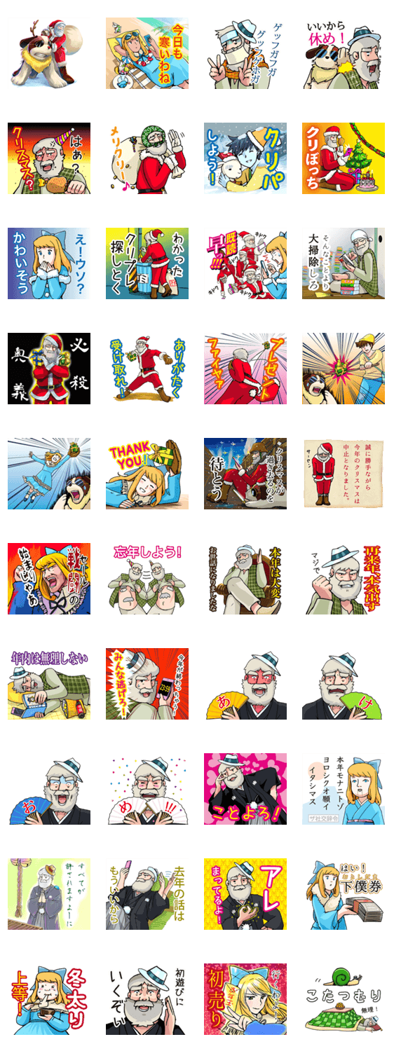 | スタンプ説明 | アルムの山に冬がきた!ちゃらおんじ&奇妙な仲間たちと一緒にスペシャルな冬を過ごしちゃおう!XMASや年末年始は、さらに“ちゃら”くなったスタンプで友達を道連れに! |