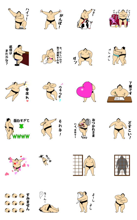 かわいい力士「おすもうちゃん」動くスタンプが再び登場!相撲大好きなあなたも、そうでない方も、楽しく使って日常会話を盛り上げてね。