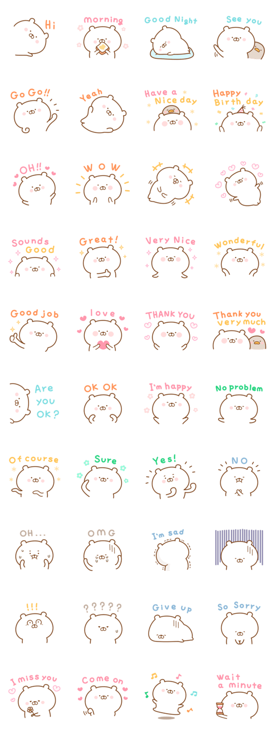 日常英会話に使える、くままんの英語スタンプ第二弾です。