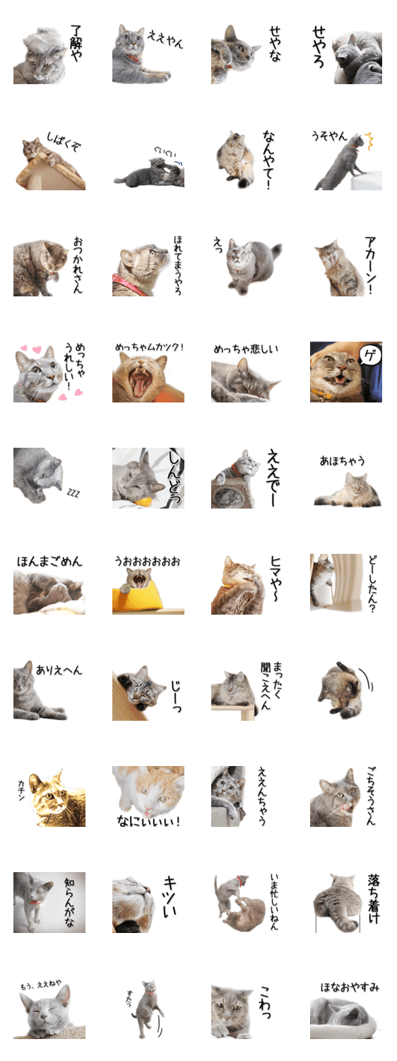 スタンプ説明 かわいい猫たちが関西弁を話します。