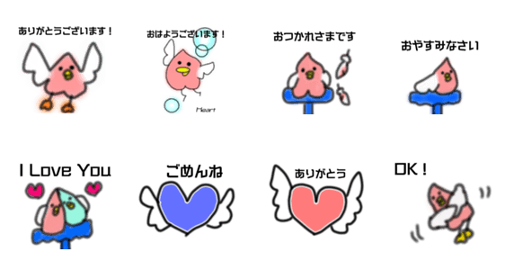 ハート型の鳥のはーたんのスタンプです。着せ替えもあります。