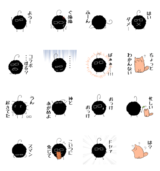 めがね(こねきち)とねこ(りんちゃん)のスタンプです。