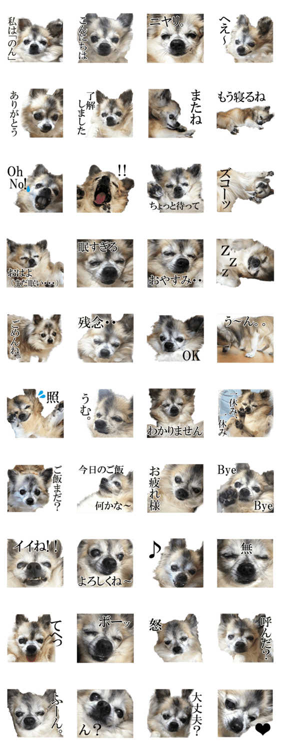 うちの愛犬チワワの「のん」の写真を使ったスタンプです。いつも眠そうなちょっとブサカワなチワワがいろいろな表情でメッセージを伝えてくれます。