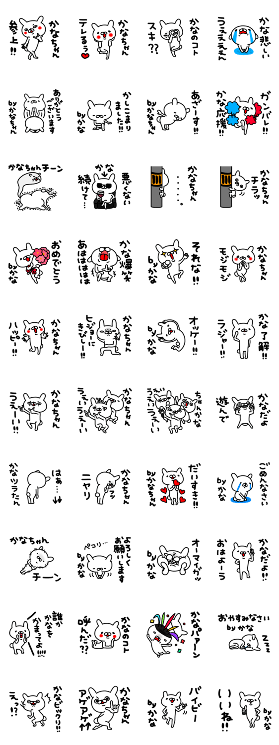 かなこ、かなえ、かなみ。全国の「カナちゃん」専用の名前スタンプです。デカ文字&日常会話の基本セット。