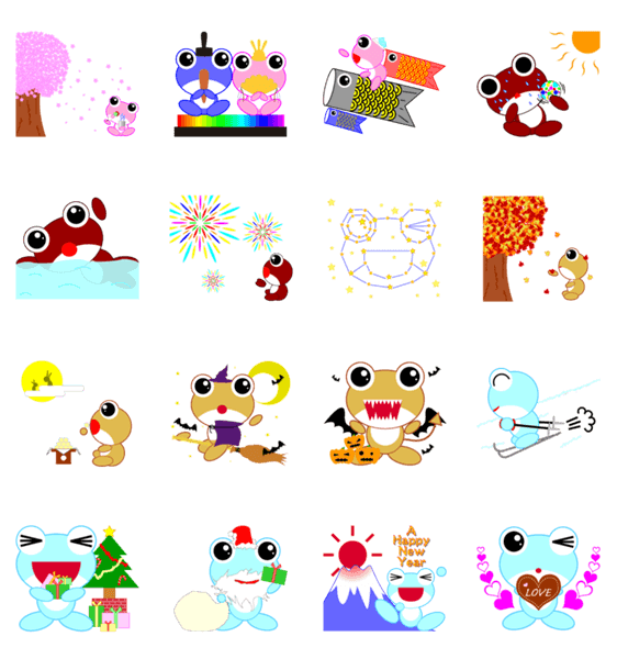 pretty frogs 春夏秋冬ver -LINEスタンプマニア