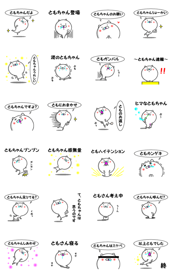 全国のともちゃんに捧げるともちゃんスタンプです。ともこ/とも/ともよ/ともえ/ともみ/ともき/ともひと/ともひろさんにおすすめ