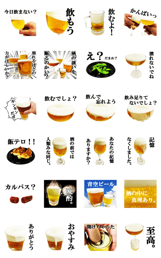 LINEスタンプ「ビール」の第2弾!!ビール好きな人、飲み好きな人是非使おう!ビール嫌いな人も使おう!制作者もビール飲めないけど使ってます!
