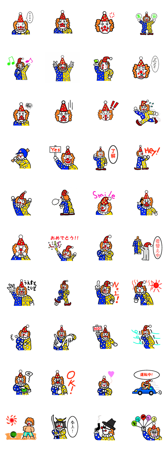 ピエロを使った、さまざまなタイプのスタンプを用意してみました!日常生活の中でつかえるものばかりです!より一層、会話が盛り上がること間違いなしです!