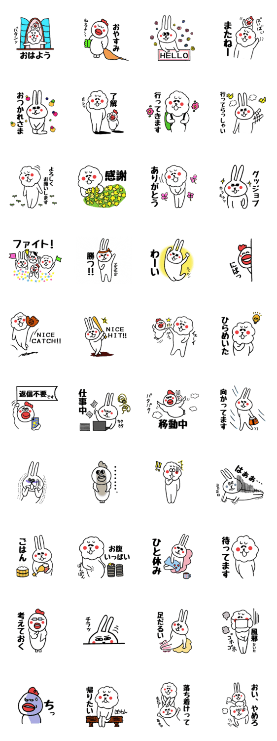 白ネコのあいうえお・・・ってるスタンプ
