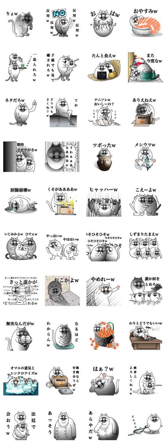 本スタンプの利用にあたっては自己の責任において使用して下さいw 本スタンプの使用に伴い利用者と第三者間でトラブルが発生しても、ねこは一切の責任を負いませんw