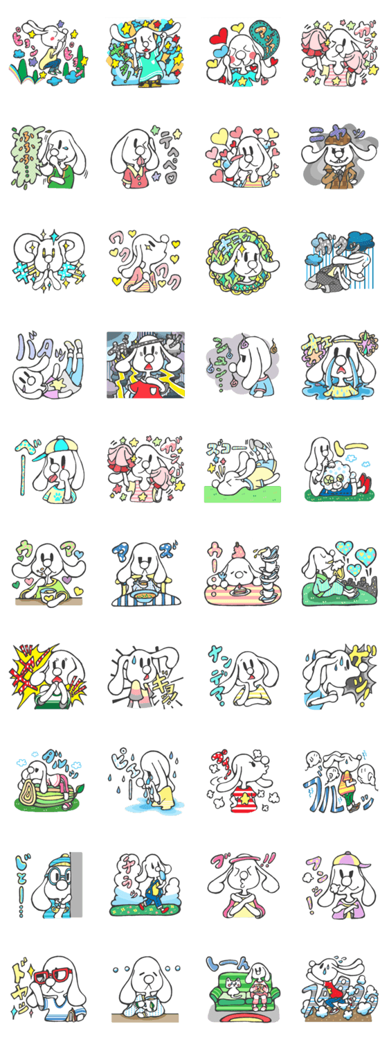 | スタンプ説明 | 静かで星が好きな耳の長い犬、ゴム。大人っぽいけれど、実は子供のような様々な表情を持っています。そんな可愛いゴムを、こっそりとのぞいてみませんか? |