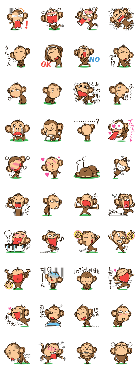 | スタンプ説明 | 愉快なサルのスタンプです。気に入ったら使ってやって下さい |
