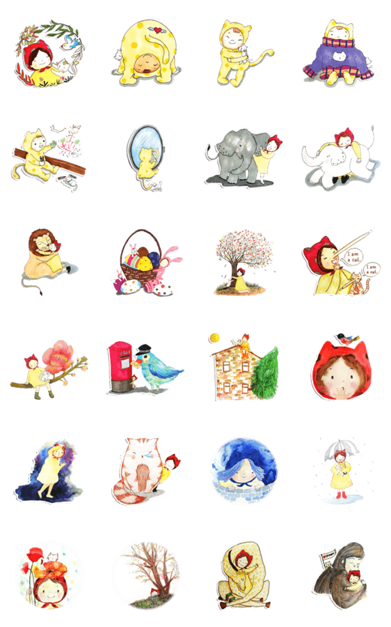 | スタンプ説明 | The girl who loves cats. She likes travelling around the world with her cats. Her life was fulfilled by cats. Everyday is a fairytale about her and the cats. |