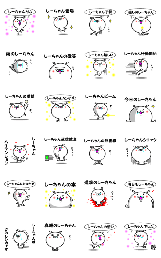 全国のしーちゃんに捧げるしーちゃんスタンプ。しほさん・しおりさん・しずかさん・しのぶさん・しほりさん・しのさん・しずえさん・しずこさん・しまさんにおすすめ