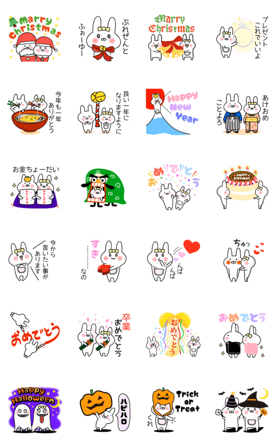クリスマス、お正月、バレンタイン、入学・誕生日のお祝い、ハロウィンなど。季節もの・お祝いスタンプです。