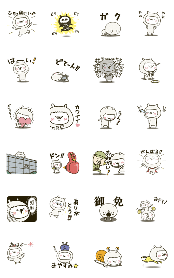 白ネコのあいうえお・・・ってるスタンプ