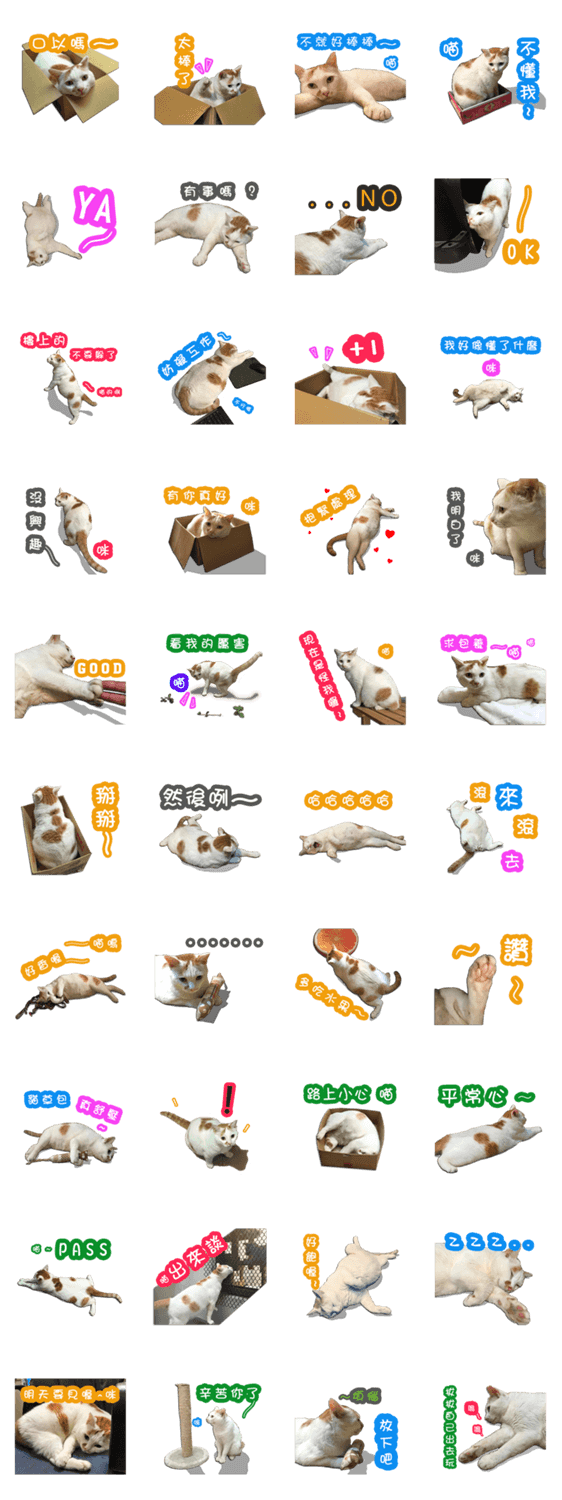 白ネコのあいうえお・・・ってるスタンプ