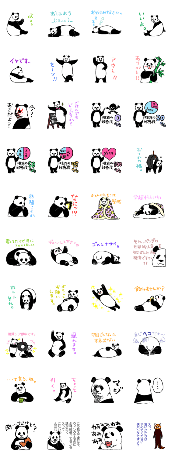 パンダ君のゆるいスタンプ。ゆるいけどややリアルめ。
