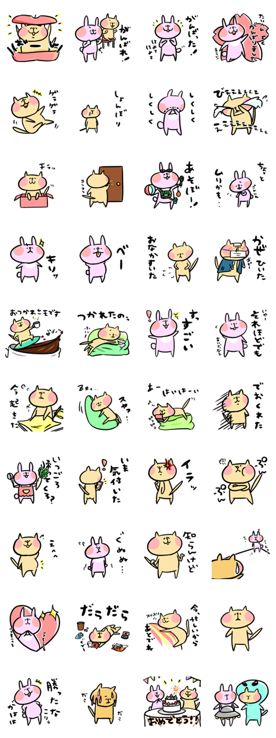ねことうさぎが色々しゃべったりするスタンプです。その1もあるよ!
